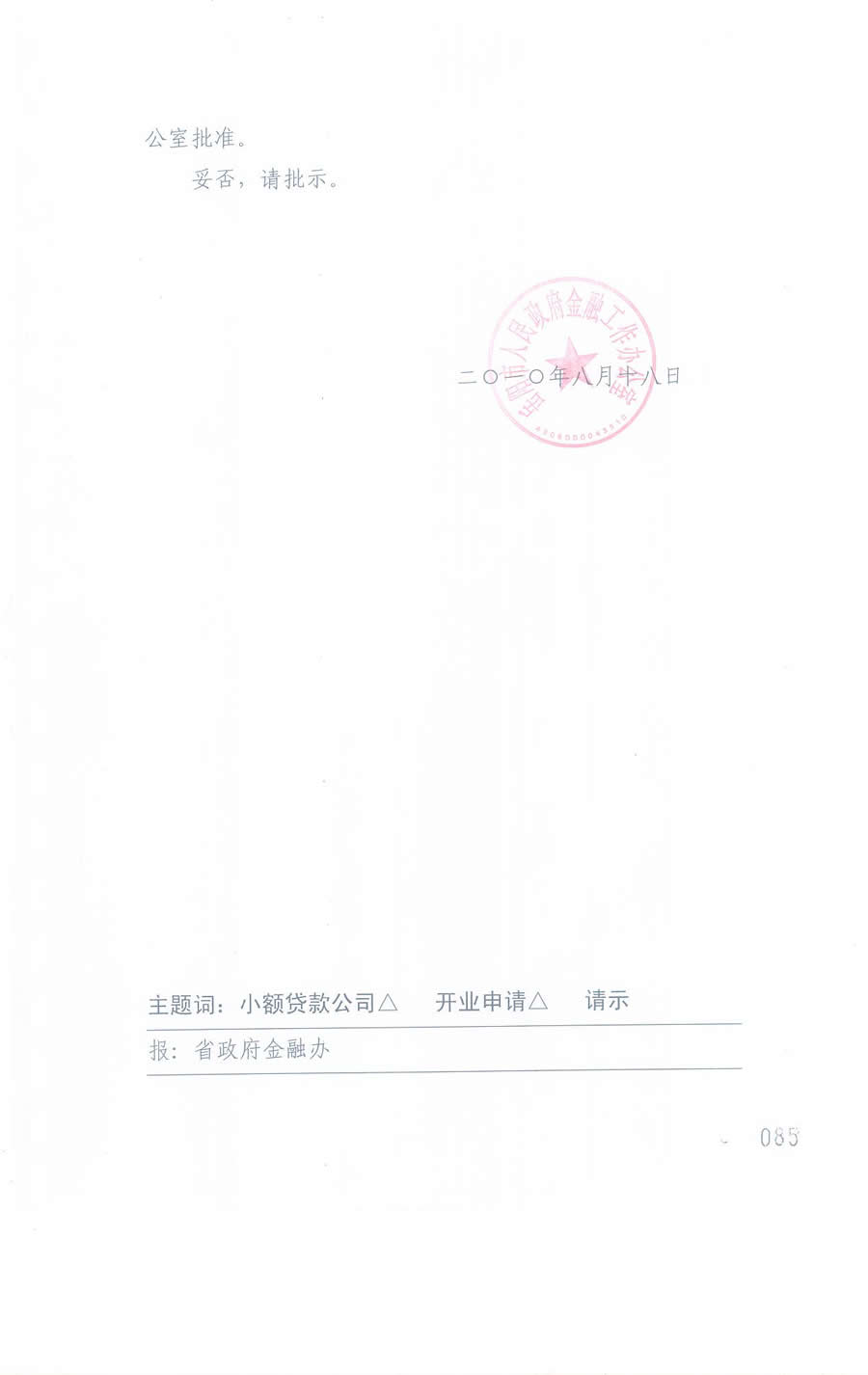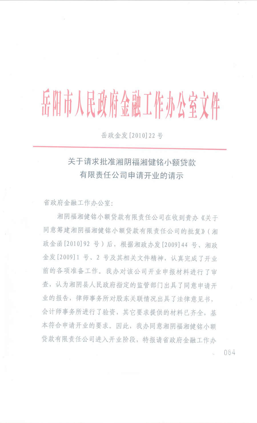 关于请求批准湘阴福湘健铭小额贷款有限责任公司申请开业的指示